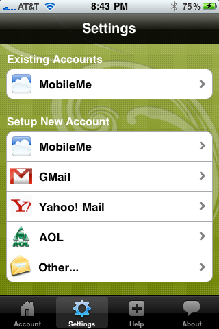 - Support for MobileMe, GMail, Yahoo! Mail, and AOL